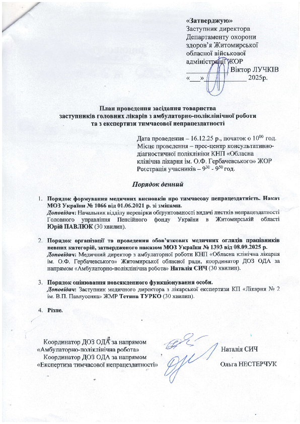 Товариство заступників головних лікарів з амбулаторно-поліклінічної роботи та з експертизи тимчасової непрацездатності 16.12.2025