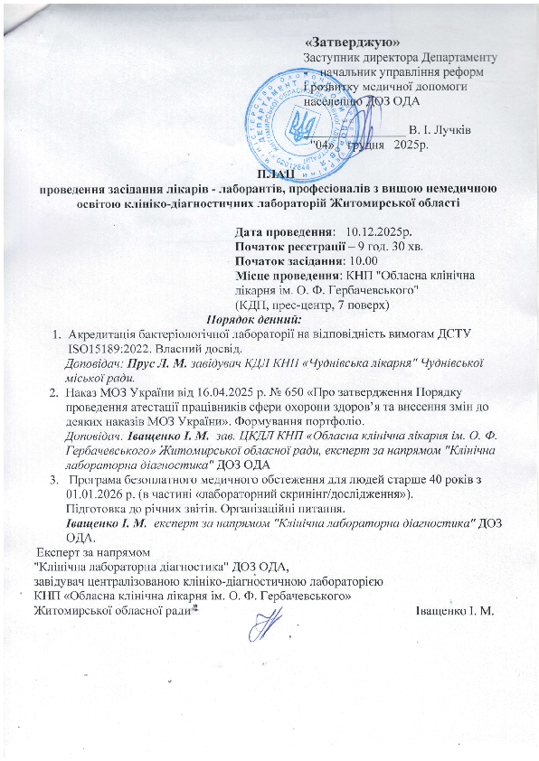 Засідання лікарів-лаборантів, професіоналів з вищою немедичною освітою клініко-діагностичних лабораторій Житомирської області 10.12.2025
